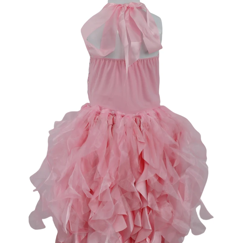 Customizable Sparkling Pink Sequin Ball Gown Halter Tulle Skirt Bow Decorations Girl Dress for Parties Special Occasions